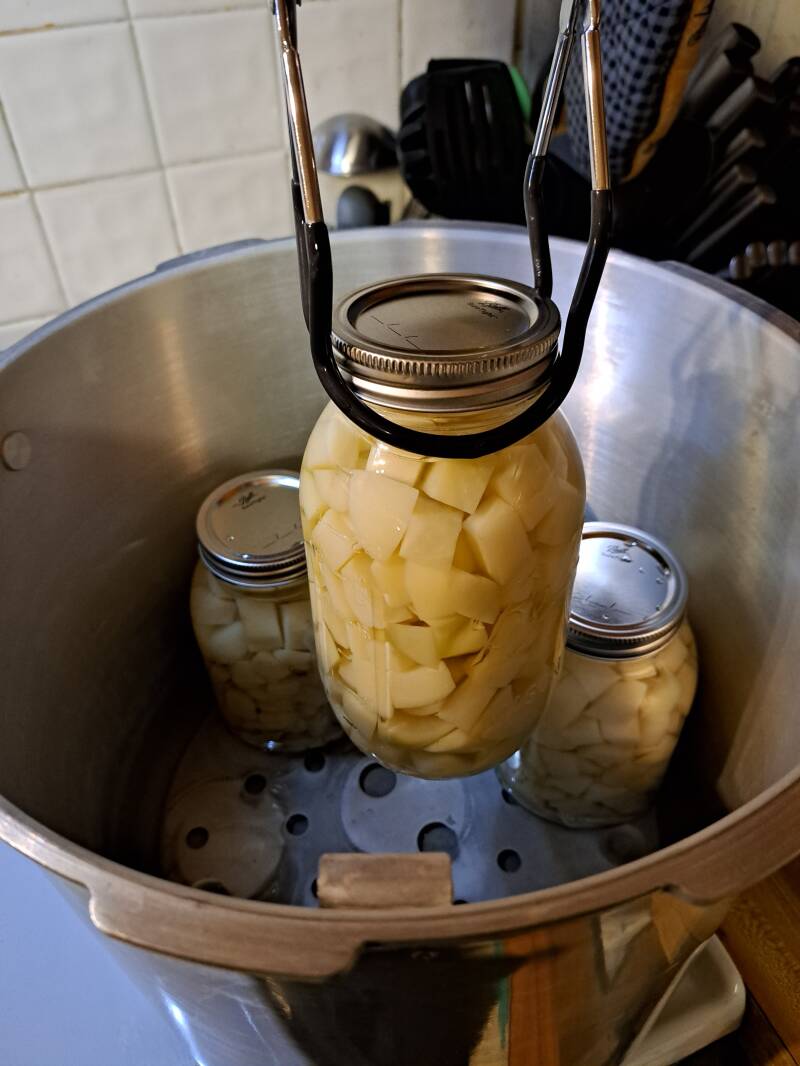 - Water (used for blanching potatoes, and fresh water for filling jars with potatoes)